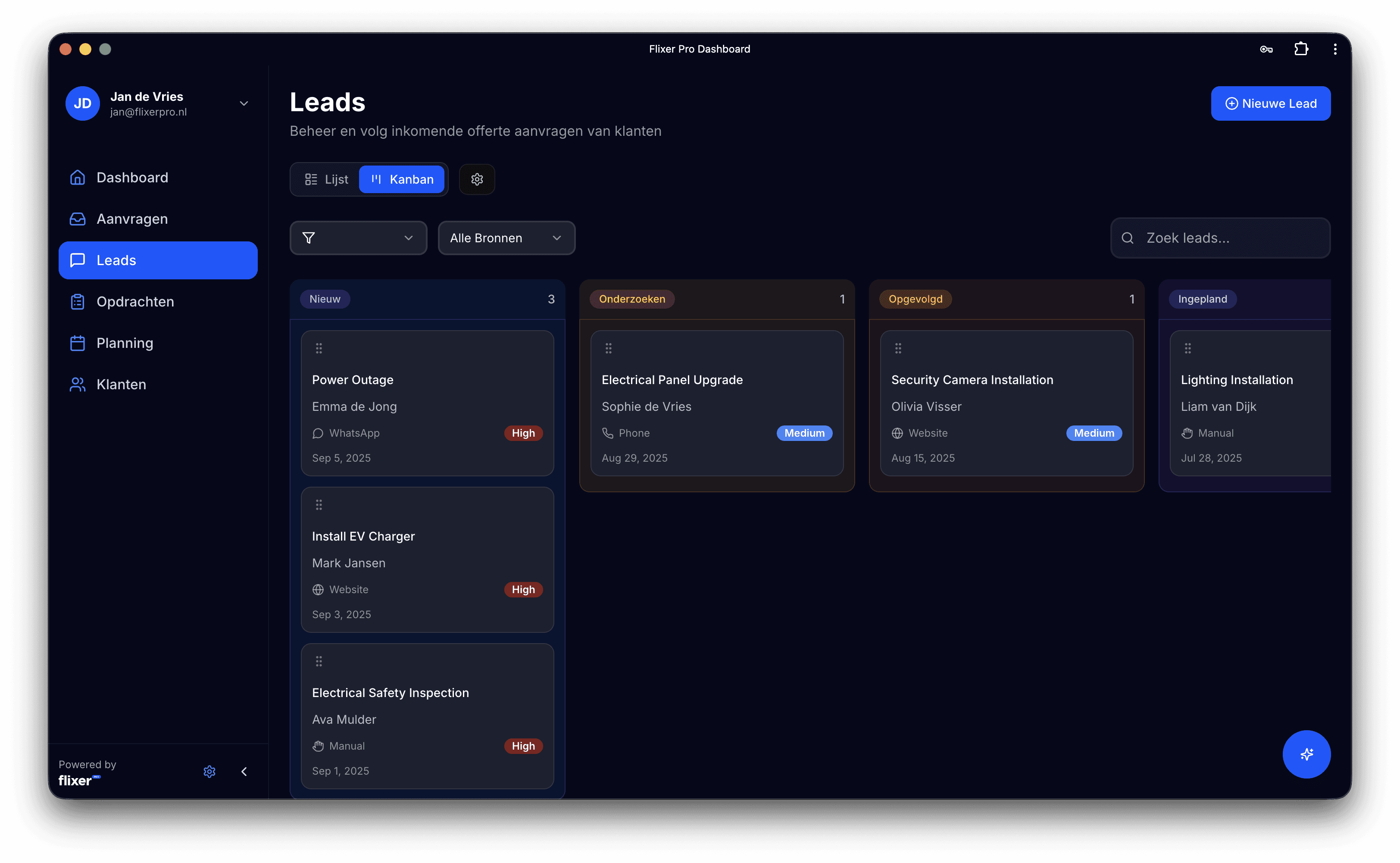 Zie in één oogopslag: prestaties, open leads, klussen van vandaag etc.